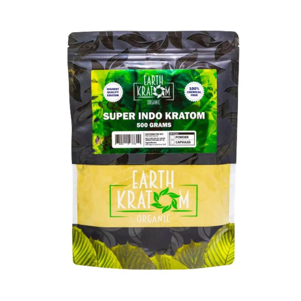 Get more of your favorite strain with Earth Kratom Super Indo Powder in a 500-gram bulk bag. Known for its balanced alkaloid profile, Super Indo is a versatile strain that appeals to both new and experienced users alike. This bulk size is perfect for regular users who want to stock up.